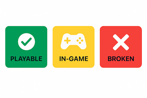 Testers run each title and observe how far it goes. They check stability, performance, and visual behavior. A game earns the Playable label when it runs smoothly from start to finish. Titles that load but struggle with bugs or low frame rate fall under In-Game. When a game fails to boot or crashes early, it ends up marked as Broken.